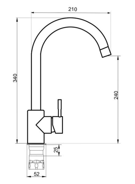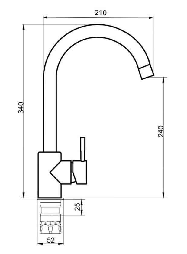 Стильный одноручковый смеситель для кухни из нержавеющей стали с высоким изливом прекрасно подойдет для мойки любого размера.