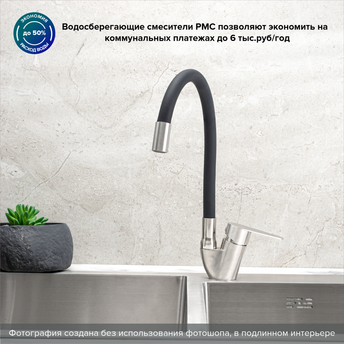Смеситель для кухни РМС SUS126BL-016F нержавеющая сталь купить