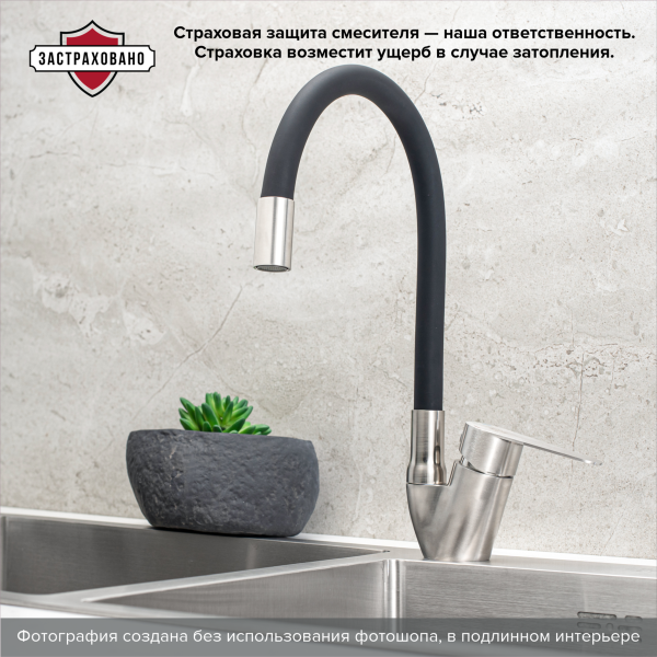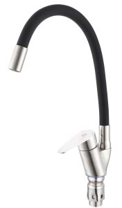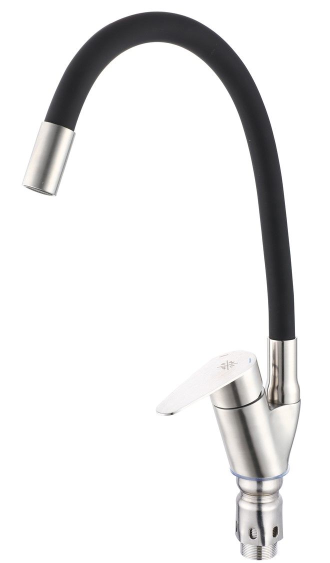 Одноручковый смеситель для кухни из нержавеющей стали с гибким изливом прост и удобен в использовании.