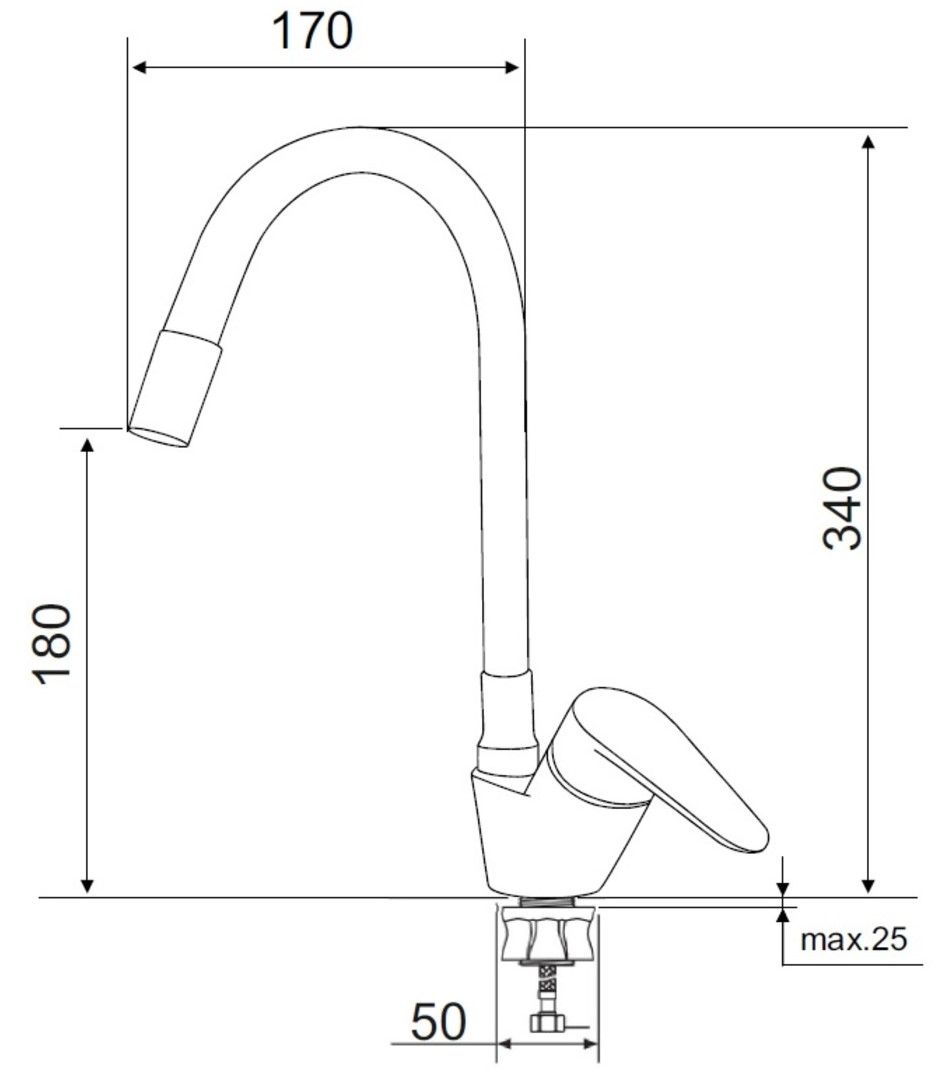 Одноручковый смеситель для кухни из нержавеющей стали с гибким изливом прост и удобен в использовании.