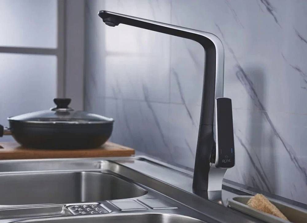 Смеситель для кухни Rose R1313H чёрный/хром