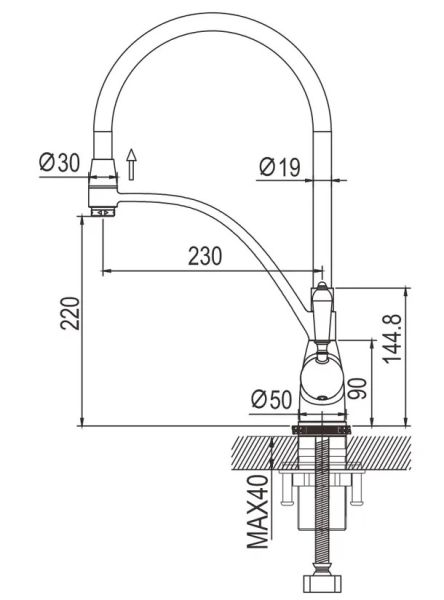 • Высота смесителя: