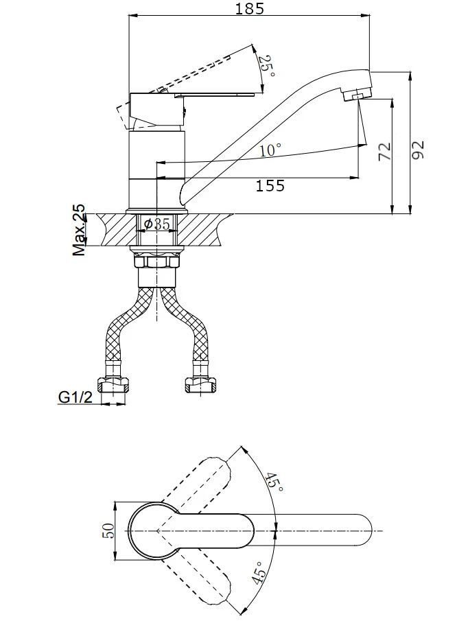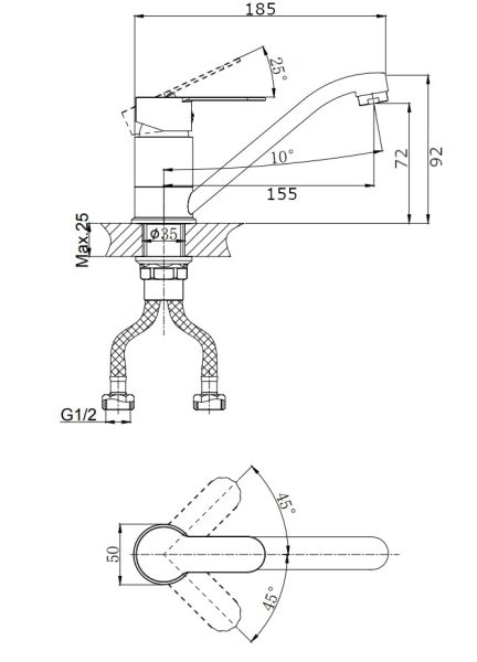Смеситель для кухни RUSH арт. TE2835-25 с поворотным изливом с металлической ручкой из коллекции Tenerife изготовлен из высококачественной латуни и имеет рычажное управление.В смеситель установлен картридж D-35 с керамическими пластинами. Высота смесителя 92 мм. Излив поворотный 155 мм. Высота излива до аэратора 72 мм. Аэратор изготовлен из пластика с нержавеющим корпусом, угол наклона - 10 гр. В комплекте универсальная присоединительная группа для установки на горизонтальную поверхность, гибкая подводка с латунными гайками 40 см - 2шт, фум-лента, индивидуальный пакет, паспорт, гарантийный талон.