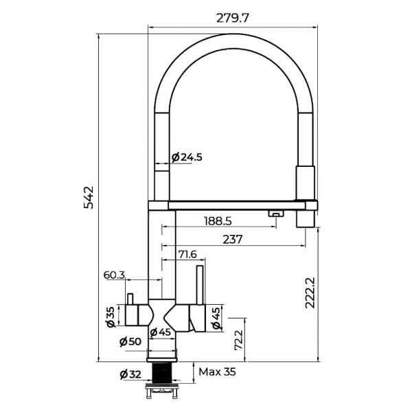 Смеситель для кухни с подключением фильтра Knotlor SS-15, сатин