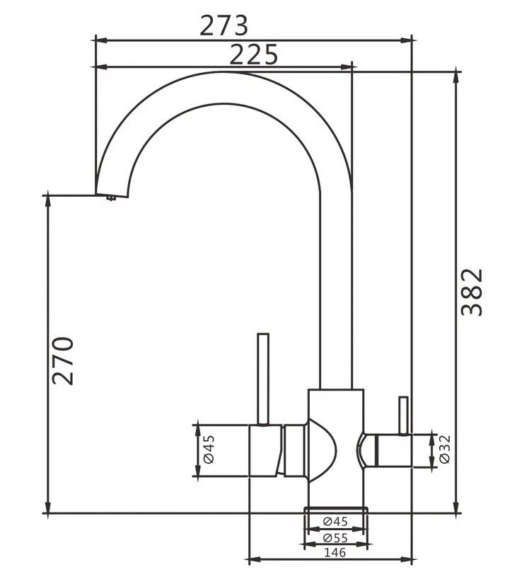 Смеситель для кухни с подключением фильтра Shevanik S168, хром.Управление: рычажное.Вращение излива: да.Выдвижной излив: нет.Гибкий излив: нет.Высота:38,2.