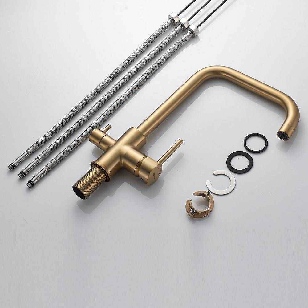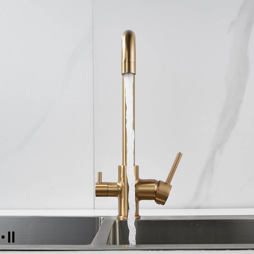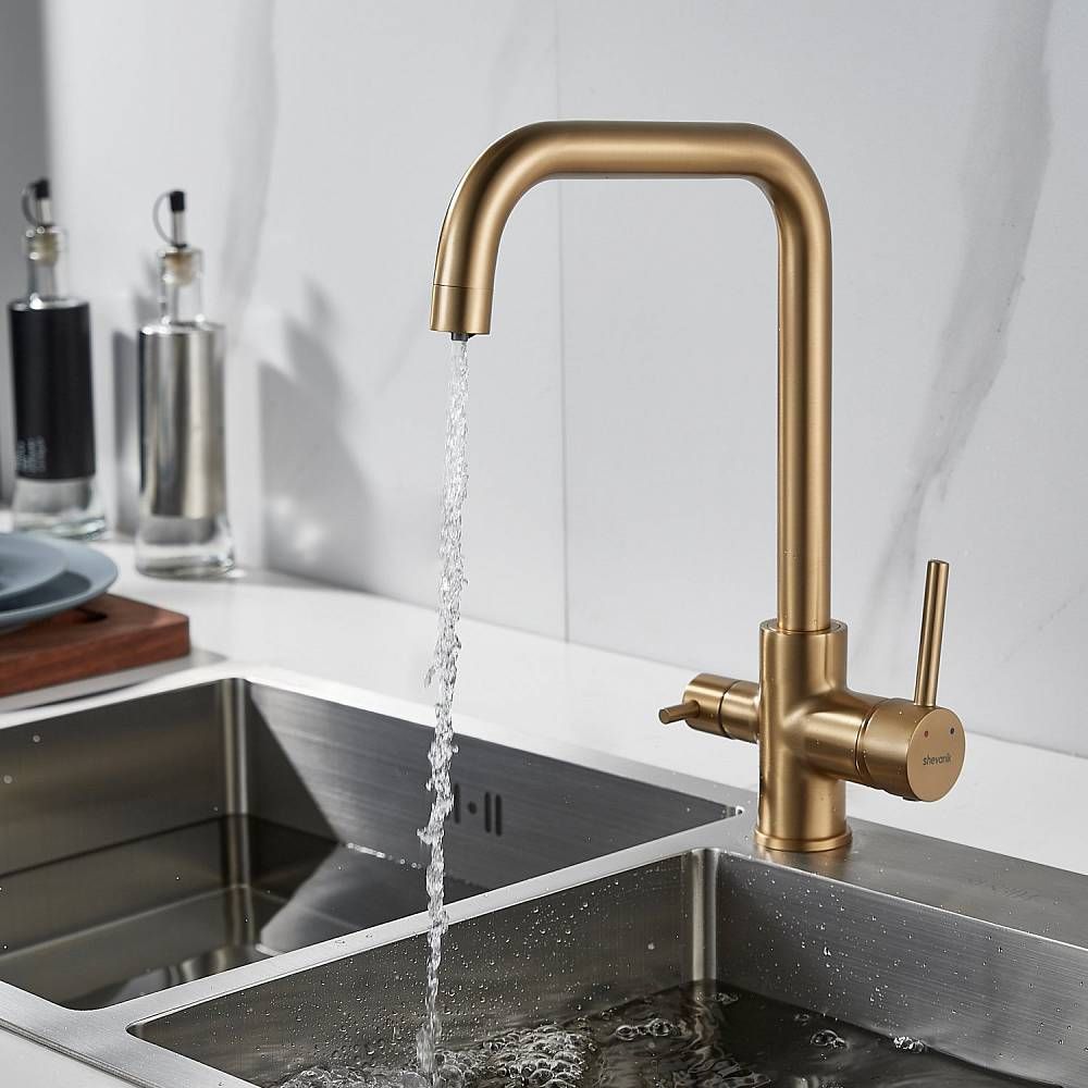 Смеситель для кухни Shevanik S228G с подключением фильтра золотой сатин купить
