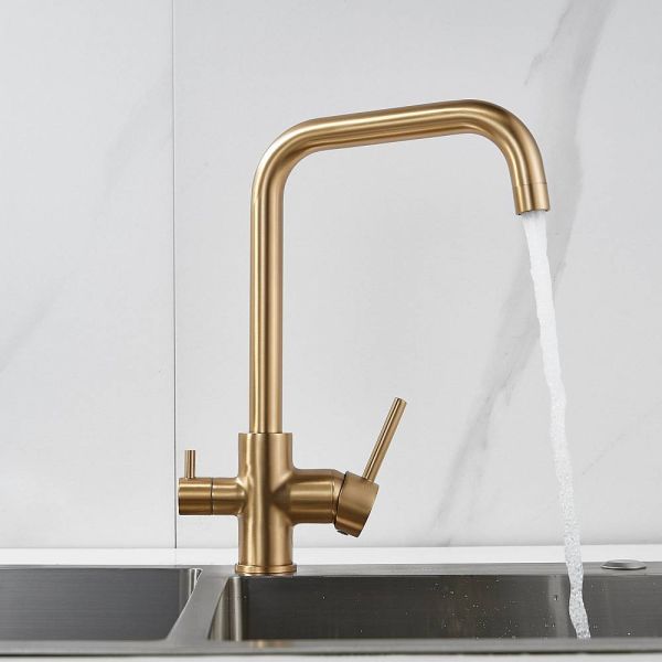 Смеситель для кухни Shevanik S228G с подключением фильтра золотой сатин