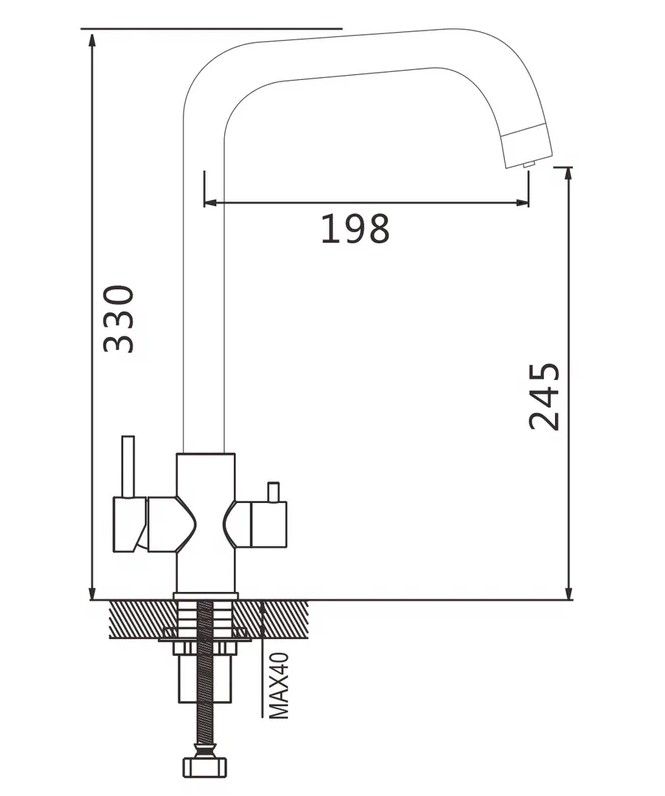 Смеситель для кухни с подключением фильтра Shevanik S228H, черный.Управление: рычажное.Вращение излива: да.Выдвижной излив: нет.Гибкий излив: нет.Высота:33.
