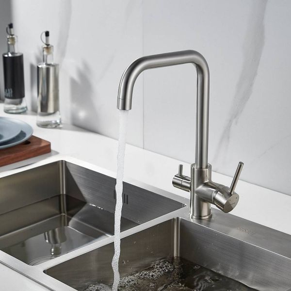 Смеситель для кухни Shevanik S228L с подключением фильтра сатин