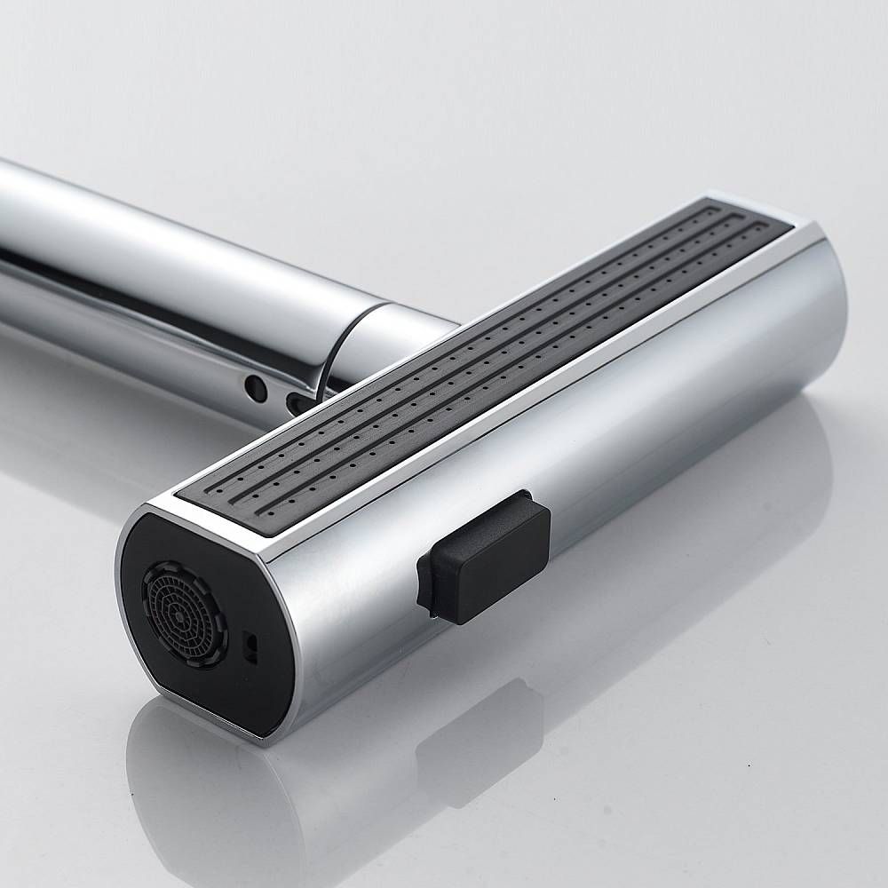 Одним из ключевых преимуществ данного смесителя является съемный выдвижной поворотный излив, который можно легко снять и повернуть в любую сторону. Излив доступен в том же цвете, что и корпус смесителя, что позволяет ему идеально сочетаться с любым кухонным интерьером.
