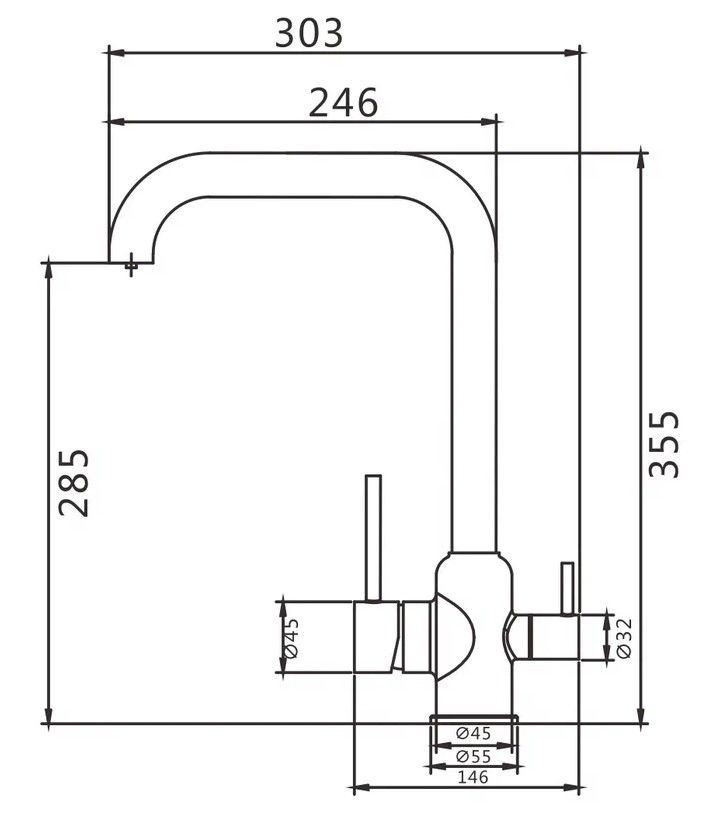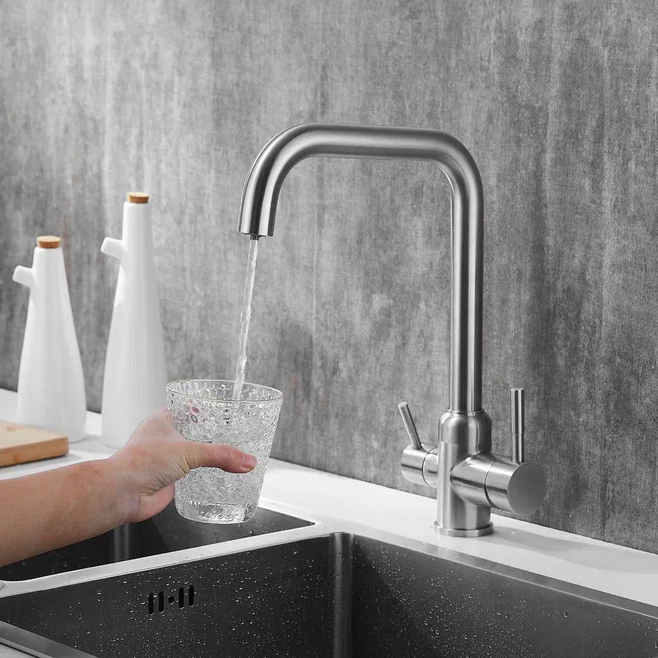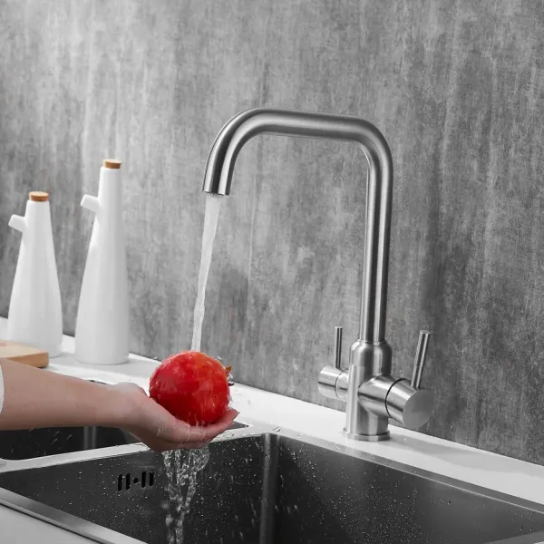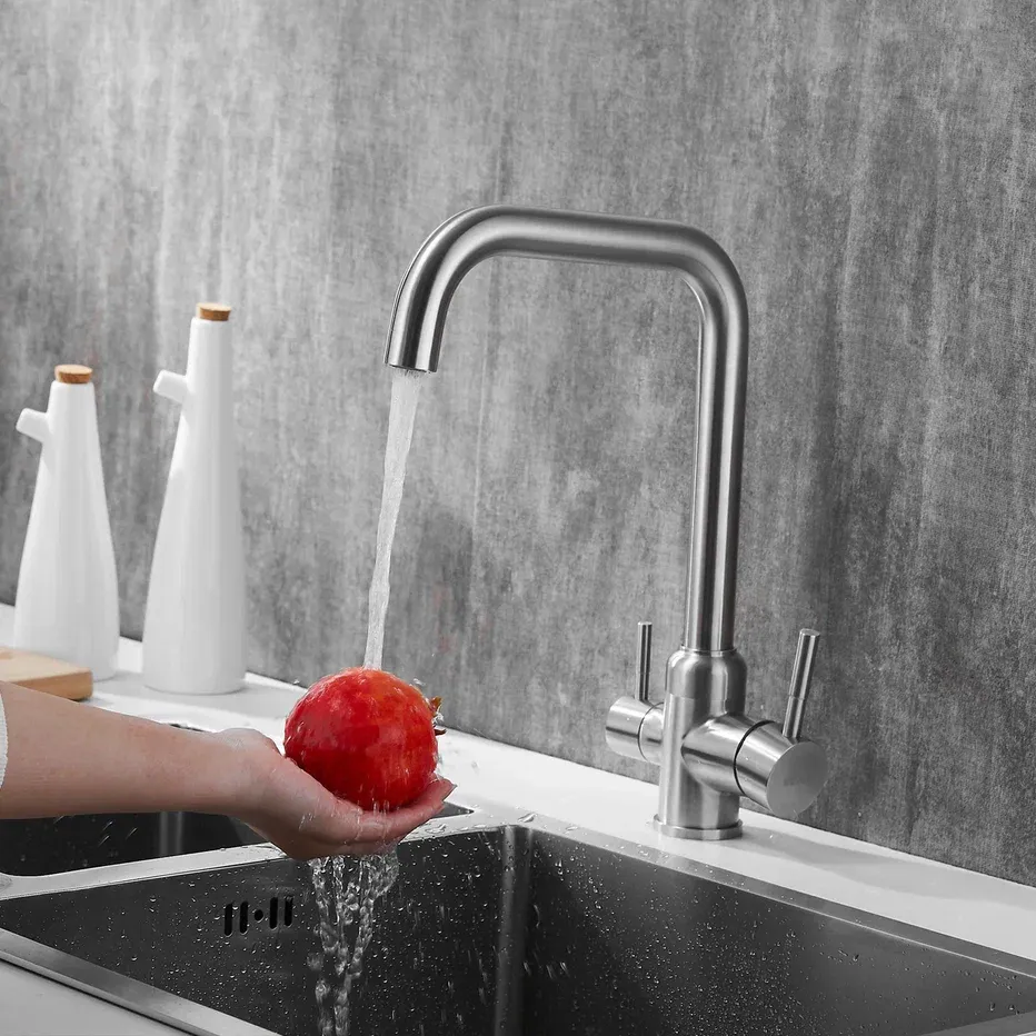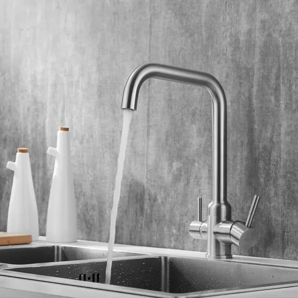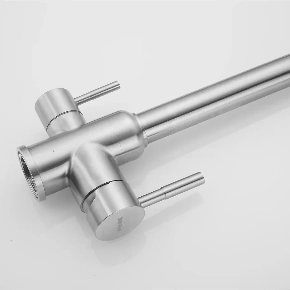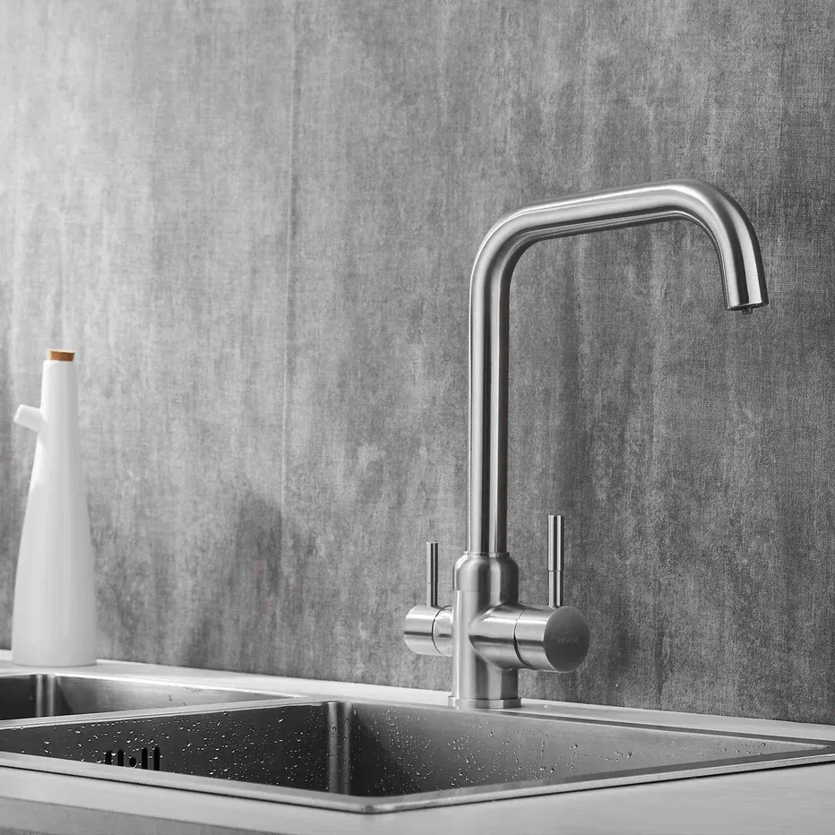 Смеситель для кухни с подключением фильтра Shevanik S268B, сатин.Управление: рычажное.Вращение излива: да.Выдвижной излив: нет.Гибкий излив: нет.Высота:35,5.