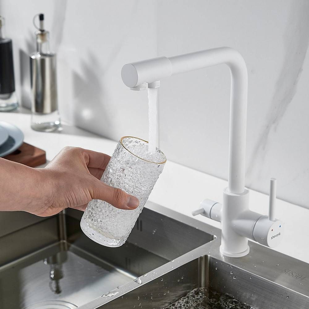 Смеситель для кухни Shevanik S328C с подключением фильтра белый купить