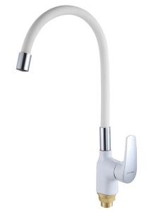 Смеситель для кухни с гибким изливом Shevanik S443-1, белый.Управление: рычажное.Вращение излива: да.Выдвижной излив: нет.Гибкий излив: да.Высота:36,5.