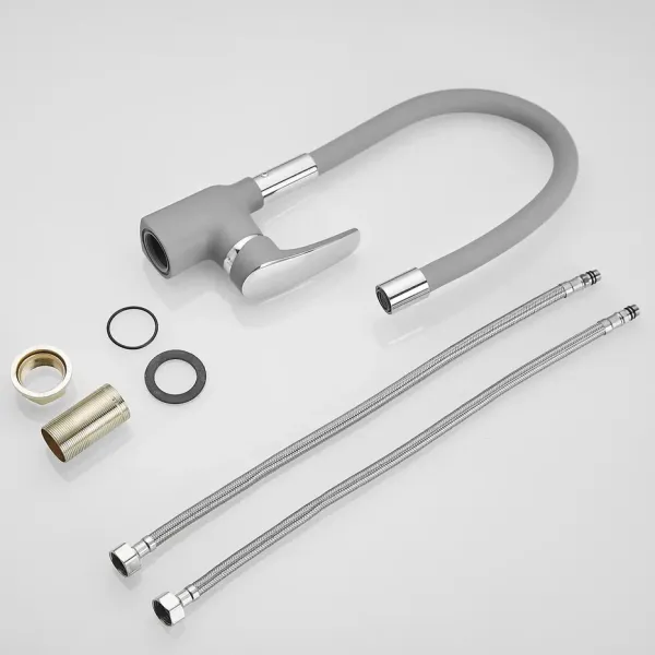 Смеситель для кухни с гибким изливом Shevanik S443-9, серый.Управление: рычажное.Вращение излива: да.Выдвижной излив: нет.Гибкий излив: да.Высота:36,5.