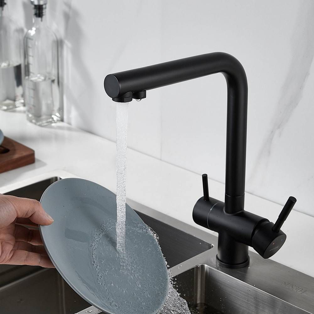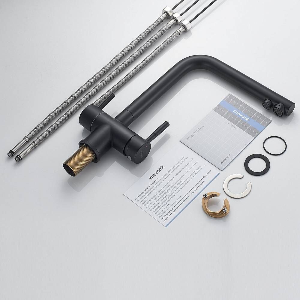 Смеситель для кухни Shevanik S468H с подключением фильтра чёрный купить