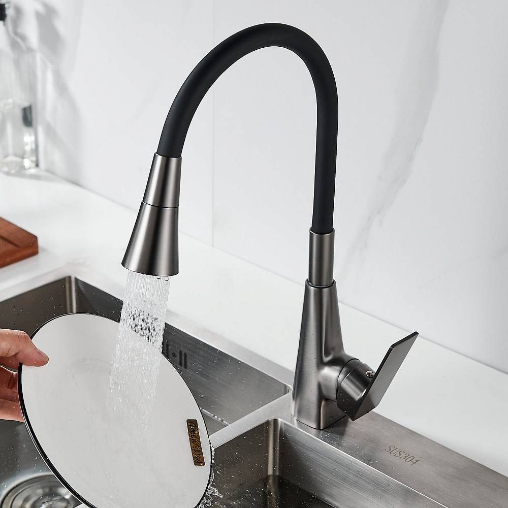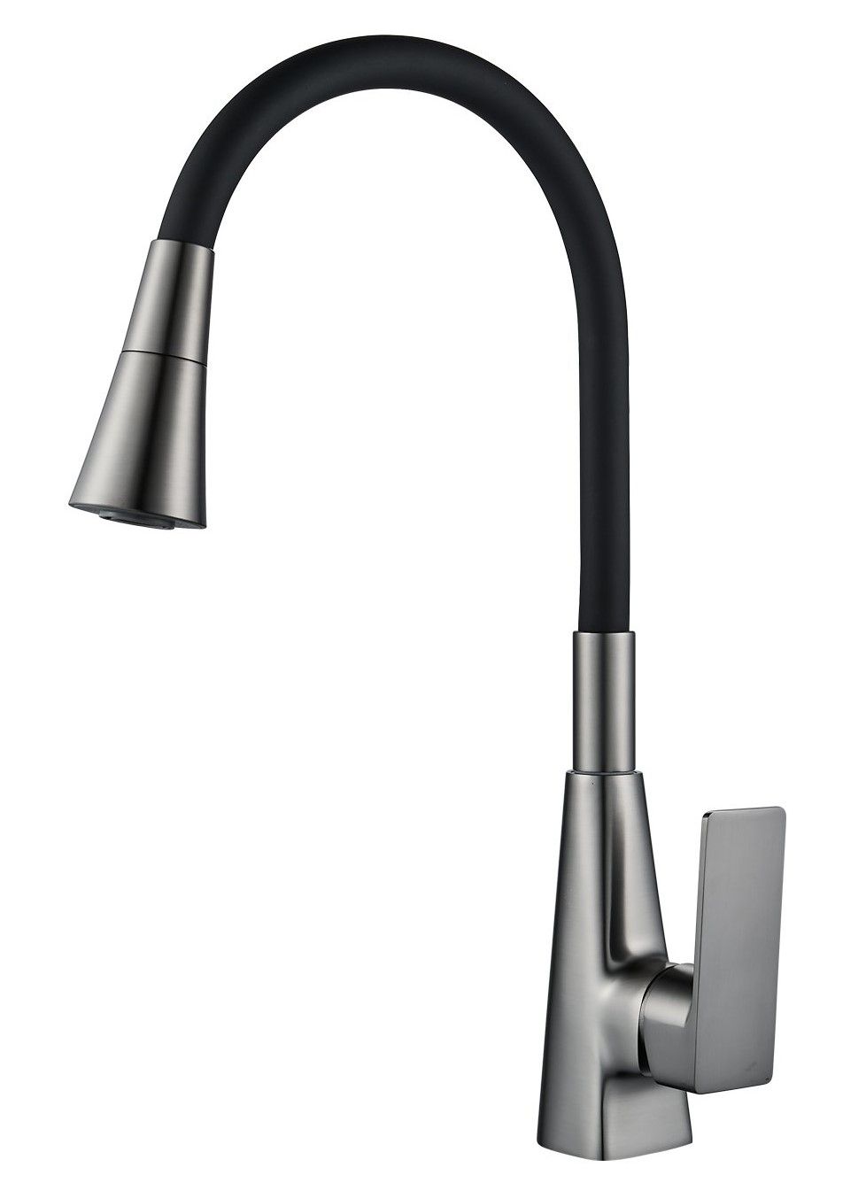 Смеситель для кухни с гибким изливом Shevanik S543T-3, оружейная сталь/черный.Управление: рычажное.Вращение излива: да.Выдвижной излив: нет.Гибкий излив: да.Высота:37,5.