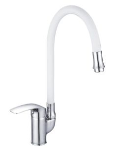 Смеситель для кухни с гибким изливом Shevanik S5543-1, хром/белый.Управление: рычажное.Вращение излива: да.Выдвижной излив: нет.Гибкий излив: да.Высота:33,2.