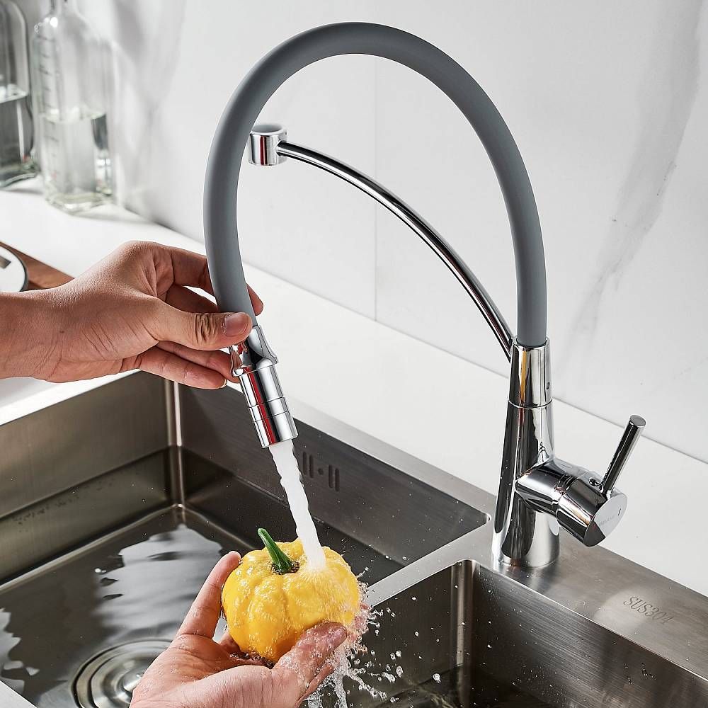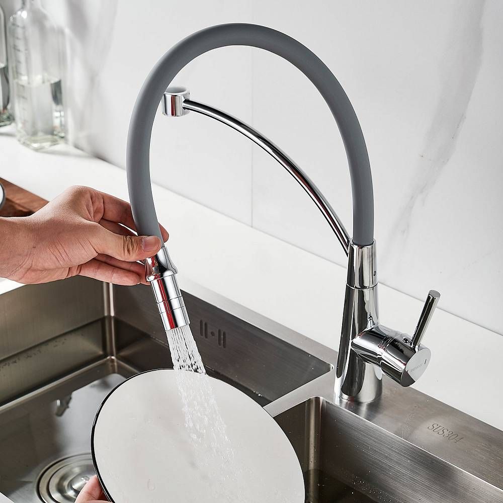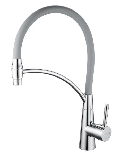 Смеситель для кухни с гибким изливом Shevanik S743-9, хром/серый.Управление: рычажное.Вращение излива: да.Выдвижной излив: нет.Гибкий излив: да.Высота:44.