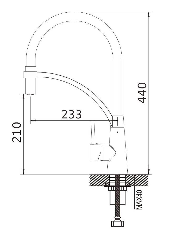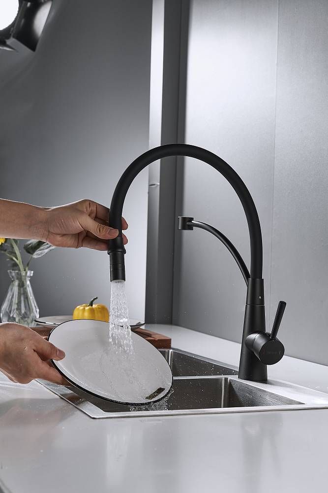 Смеситель для кухни с гибким изливом Shevanik S743H-3, черный.Управление: рычажное.Вращение излива: да.Выдвижной излив: нет.Гибкий излив: да.Высота:44.