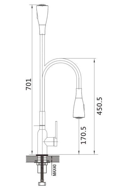 Смеситель для кухни с гибким изливом Shevanik S843T-3, оружейная сталь/черный.Управление: рычажное.Вращение излива: да.Выдвижной излив: нет.Гибкий излив: да.Высота:45.