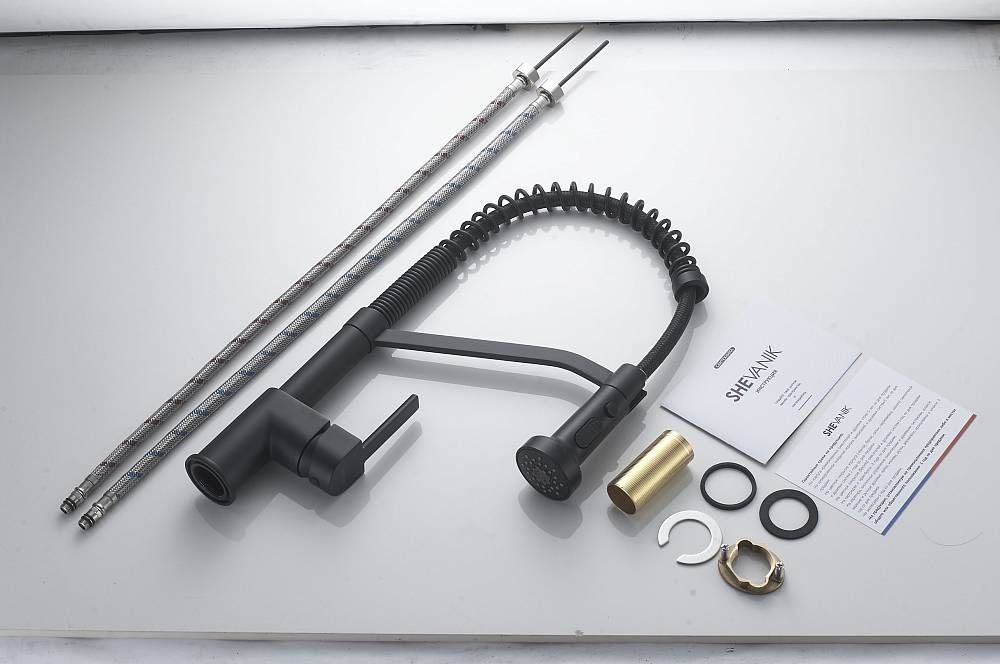 Смеситель для кухни с гибким изливом Shevanik S963H, черный.Управление: рычажное.Вращение излива: да.Выдвижной излив: нет.Гибкий излив: да.Высота:44.