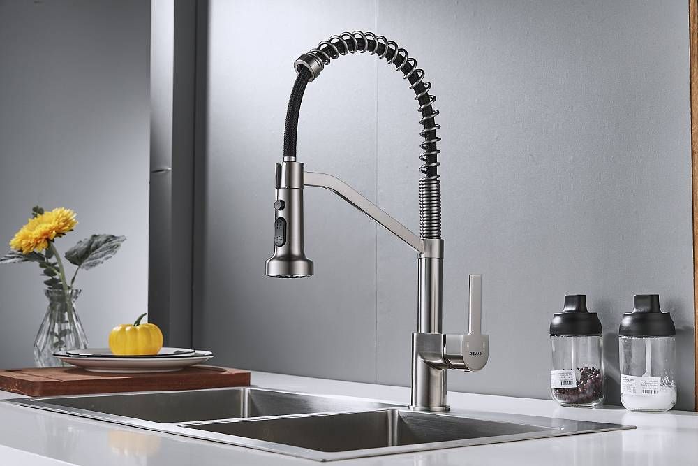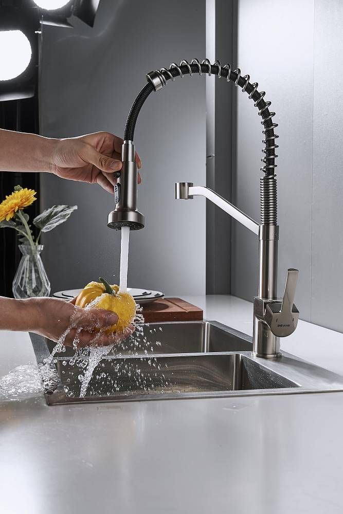 Смеситель для кухни с гибким изливом Shevanik S963L, сатин.Управление: рычажное.Вращение излива: да.Выдвижной излив: нет.Гибкий излив: да.Высота:44.
