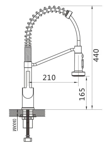 Высота смесителя:44
