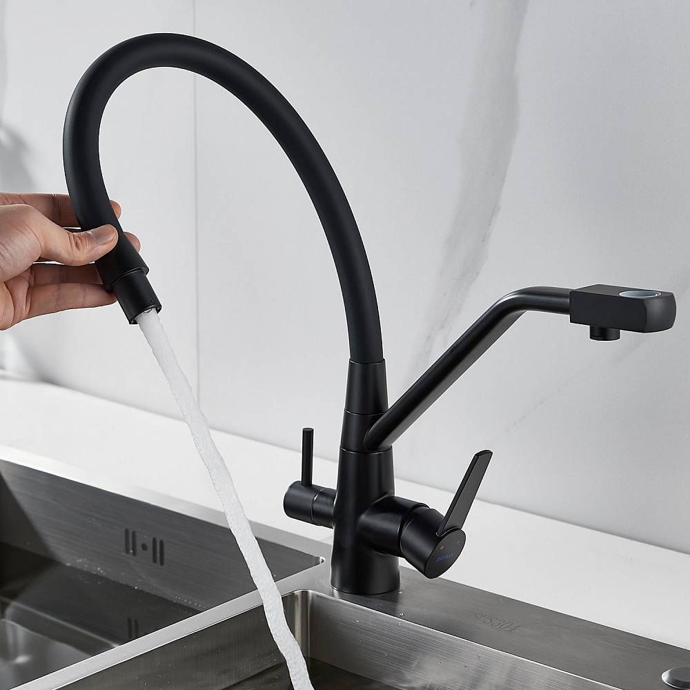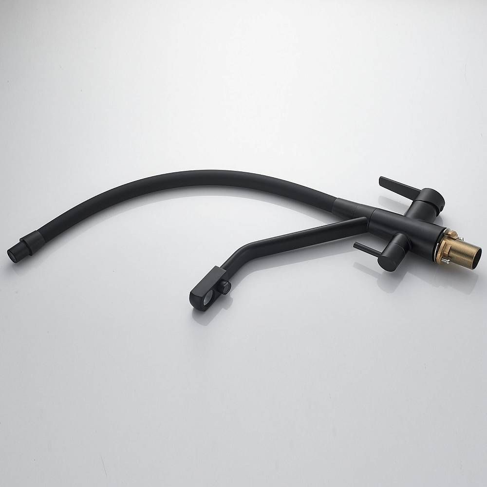 Смеситель для кухни с подключением фильтра и гибким изливом Shevanik S968H, черный.Управление: рычажное.
