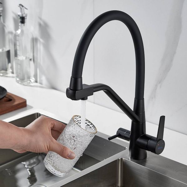 Смеситель для кухни Shevanik S968H с подключением фильтра чёрный купить