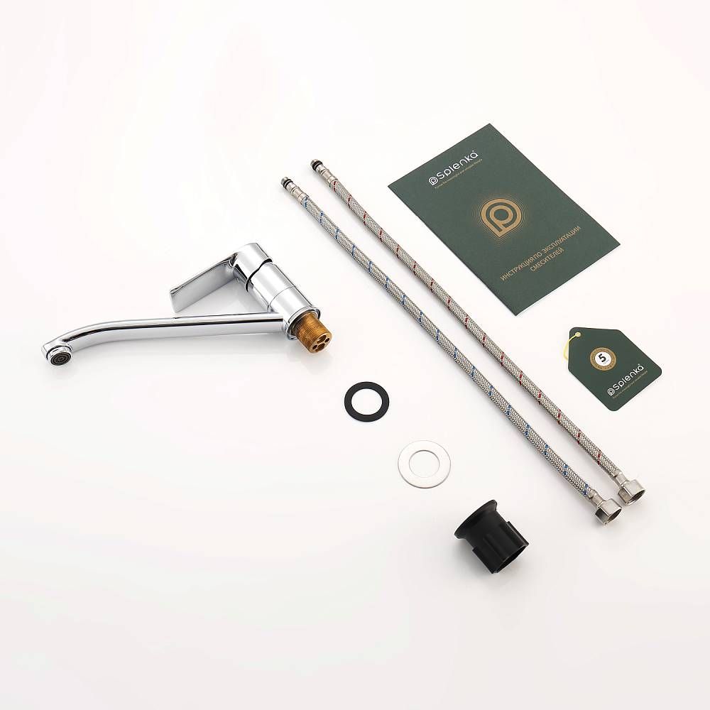 Смеситель для кухни Splenka S05.42. Цвет: хром. Установка смесителя крайне проста. Гибкая подводка 50 см идет в комплекте. Благодаря грамотно разработанной конструкции, прибор отлично справляется с регулированием температуры и напора потоков воды. Однорычажные смесители максимально удобны при эксплуатации, всего одним движением руки можно закрыть или открыть воду, имеют стильный внешний вид, а также комфортность в использовании. Гарантия 5 лет