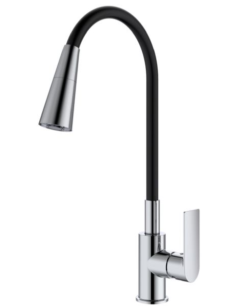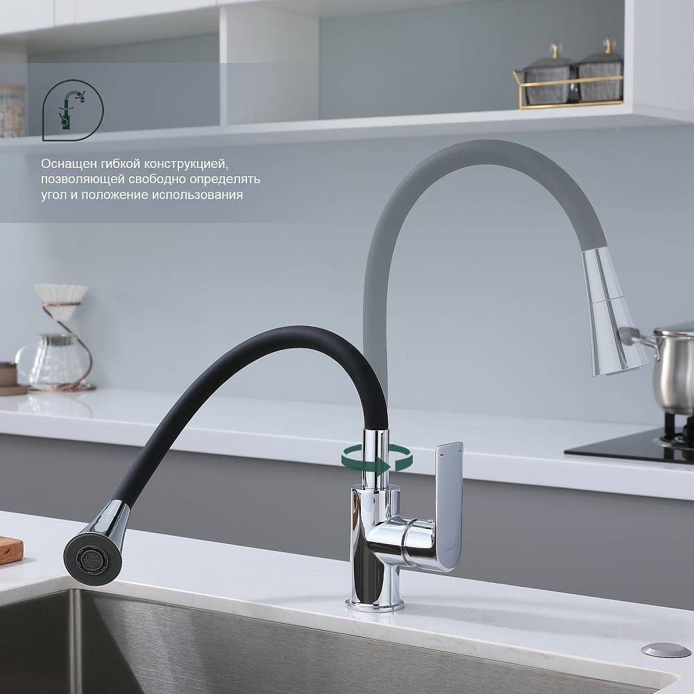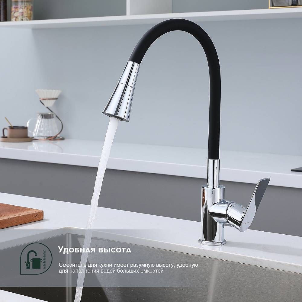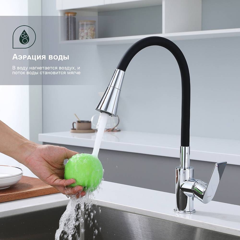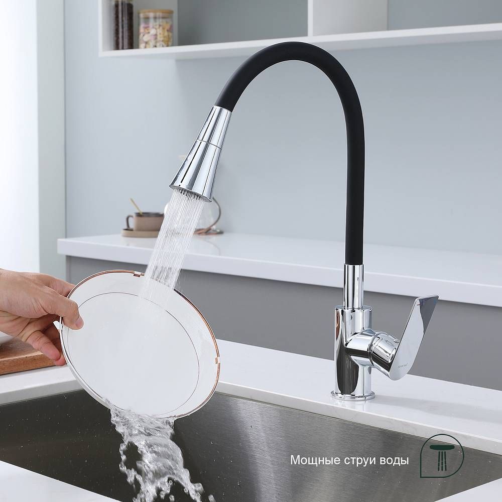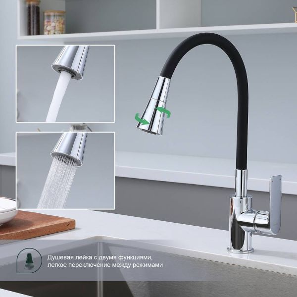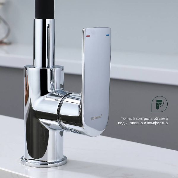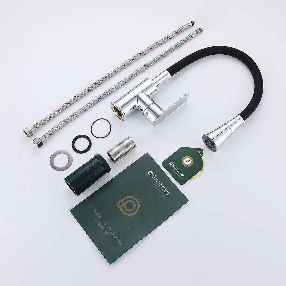 Смеситель для кухни Splenka S05.43 идеально подходит для кухонной мойки, раковины любого типа. Цвет: хром. Смеситель имеет 2 режима: поток воды и душ. Кран с гибким изливом имеет необычный внешний вид и особую конструкцию. С помощью гибкого шланга можно самостоятельно регулировать глубину выноса и высоту излива, что позволит избежать лишнего разбрызгивания воды. Также с помощью силиконового излива не составит труда добраться до всех мест в мойке, что упрощает мытье посуды и продуктов. Стильный латунный смеситель имеет свойство шумоподавления.