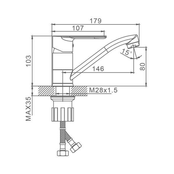 Смеситель для кухни Splenka S05.45. Цвет: хром. Гибкая подводка 50 см идет в комплекте. Благодаря грамотно разработанной конструкции, прибор отлично справляется с регулированием температуры и напора потоков воды. Однорычажные смесители максимально удобны при эксплуатации, всего одним движением руки можно закрыть или открыть воду, имеют стильный внешний вид, а также комфортность в использовании. Гарантия 5 лет.