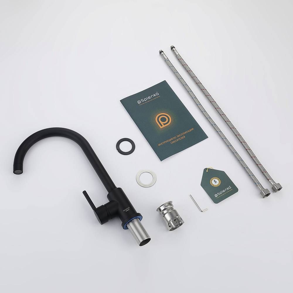 Смеситель для кухни Splenka S201.40.06. Цвет: черный. Смеситель для кухни сочетает в себе удобную конструкцию, простоту в установке, универсальный современный дизайн и доступную цену за высокое качество.Смеситель превосходно дополнит интерьер любой кухни. В набор входит гибкая подводка размером 1/2". Монтаж на гайку. Тип подводки – гибкий. Обслуживание одного потребителя. Без температурных ограничений. Монтаж на одно отверстие.