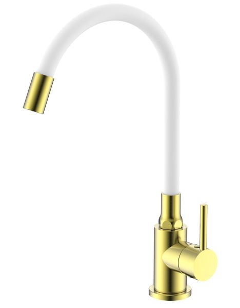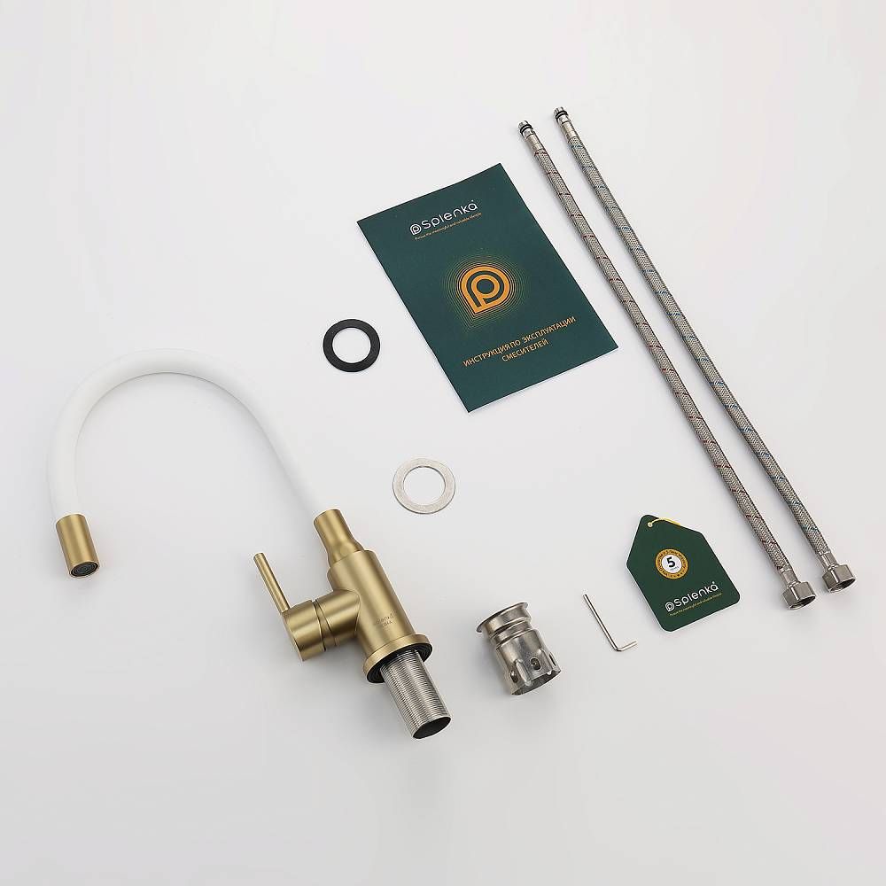 Смеситель для кухни Splenka S201.4408.03. Цвет: сатин золотой. Смеситель для кухни сочетает в себе удобную конструкцию, простоту в установке, универсальный современный дизайн и доступную цену за высокое качество.Смеситель превосходно дополнит интерьер любой кухни. В набор входит гибкая подводка размером 1/2". Монтаж на гайку. Тип подводки – гибкий. Обслуживание одного потребителя. Без температурных ограничений. Монтаж на одно отверстие.
