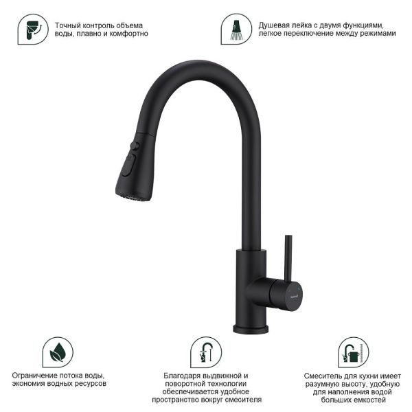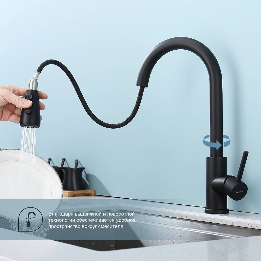 Смеситель для кухни Splenka S203.49.06 с выдвижным изливом чёрный купить
