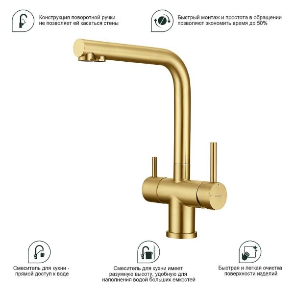 Смеситель для кухни Splenka S70.61.03 с подключением фильтра золотой сатин купить