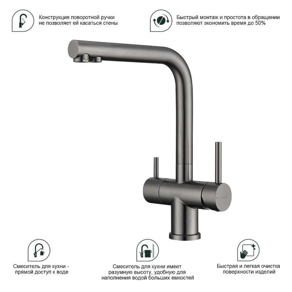 Смеситель для кухни Splenka S70.61.09 с подключением фильтра графит купить