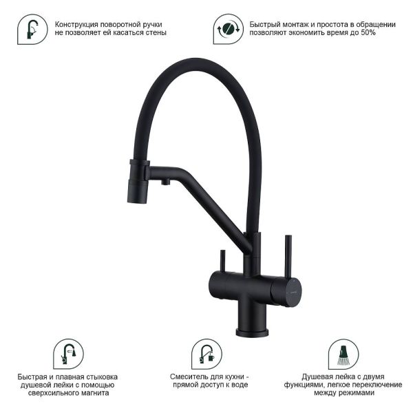 Смеситель для кухни Splenka S70.62.06 с подключением фильтра чёрный купить