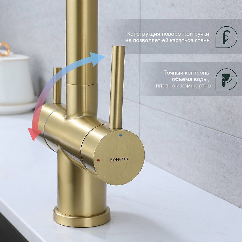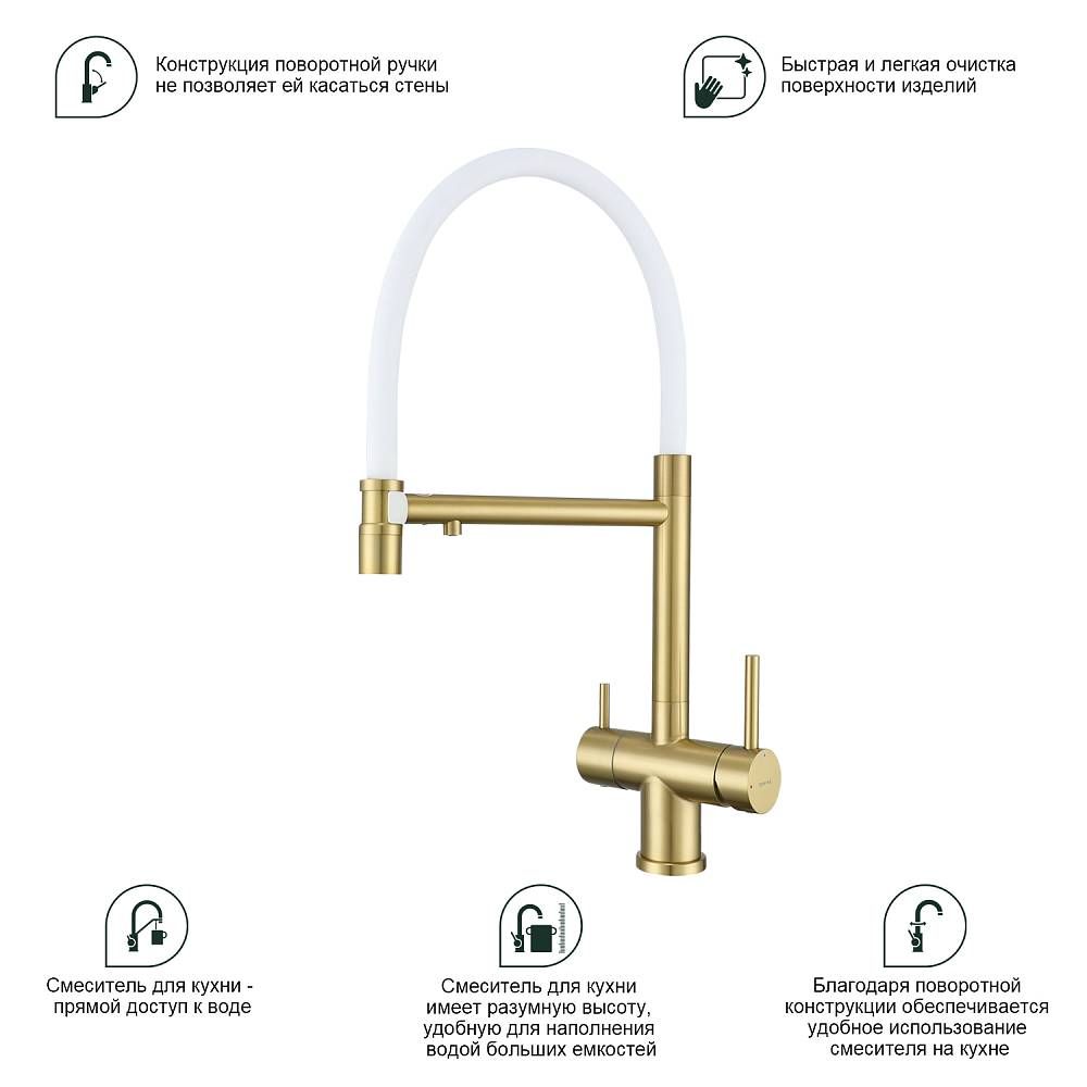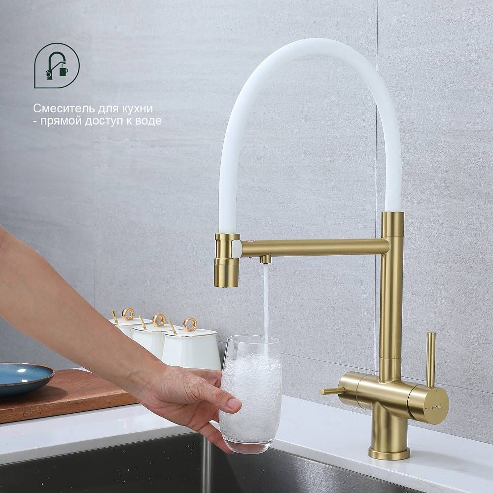 Смеситель для кухни Splenka S70.63.03 с подключением фильтра золотой сатин купить
