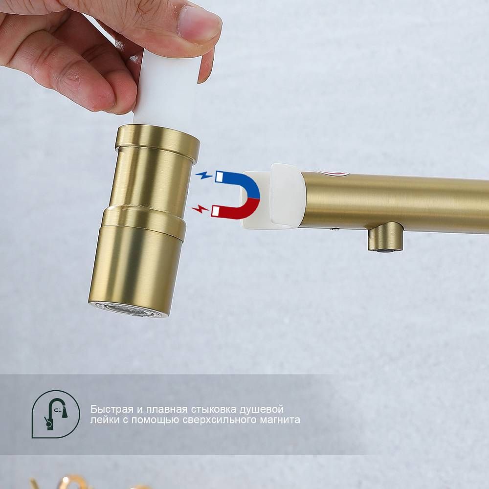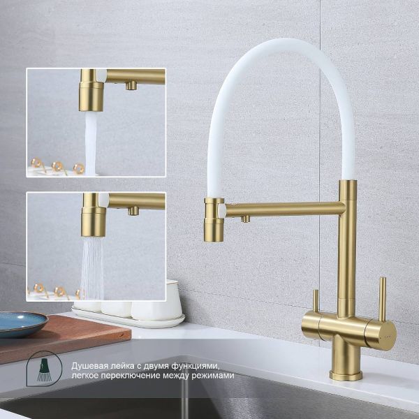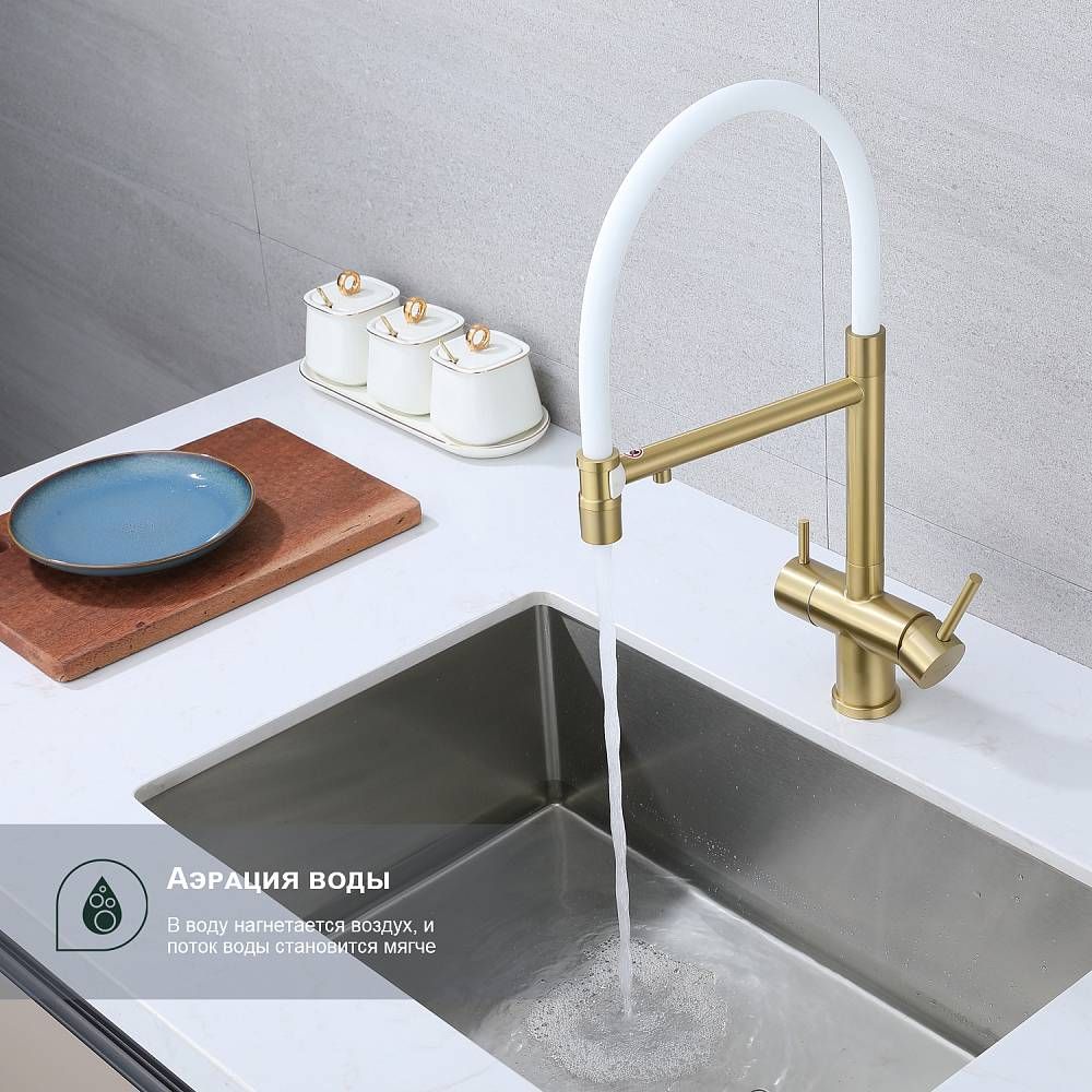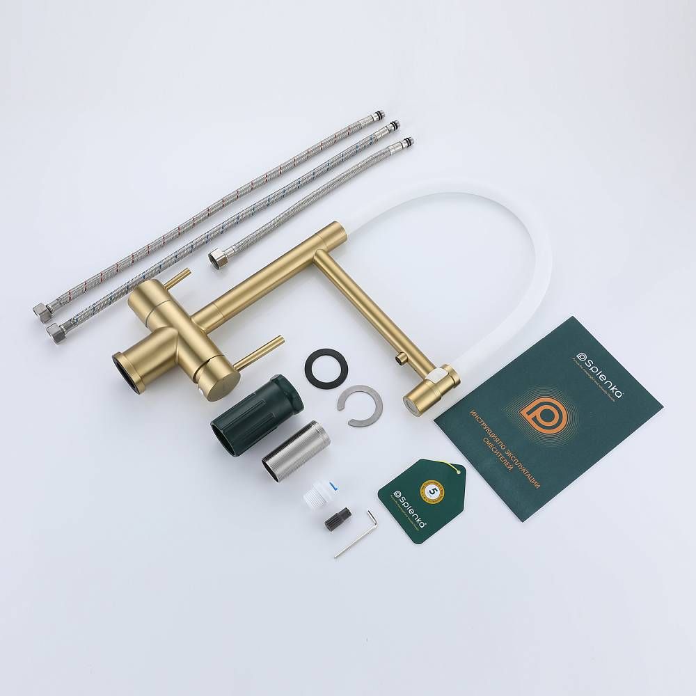 Смеситель для кухни Splenka S70.63.03 с подключением фильтра золотой сатин