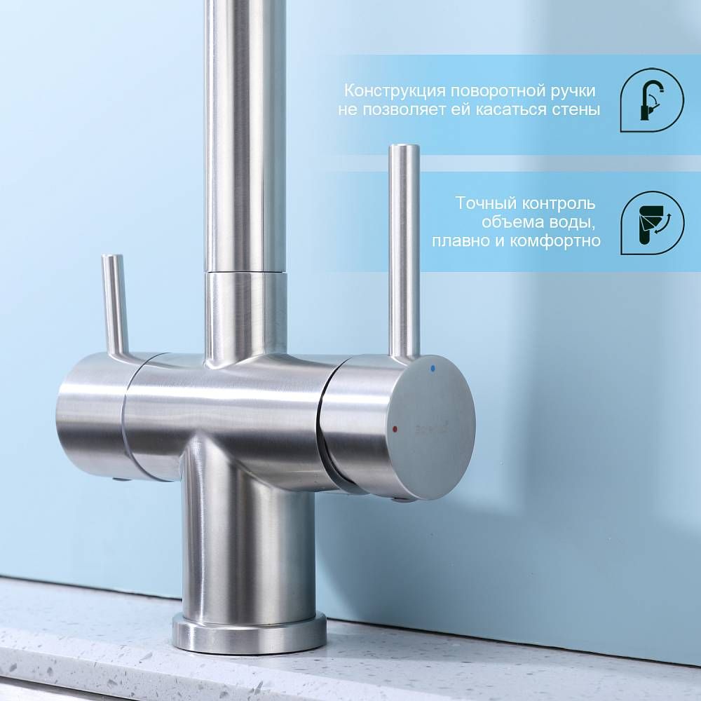 Смеситель для кухни Splenka S70.63.05 с подключением фильтра сатин купить