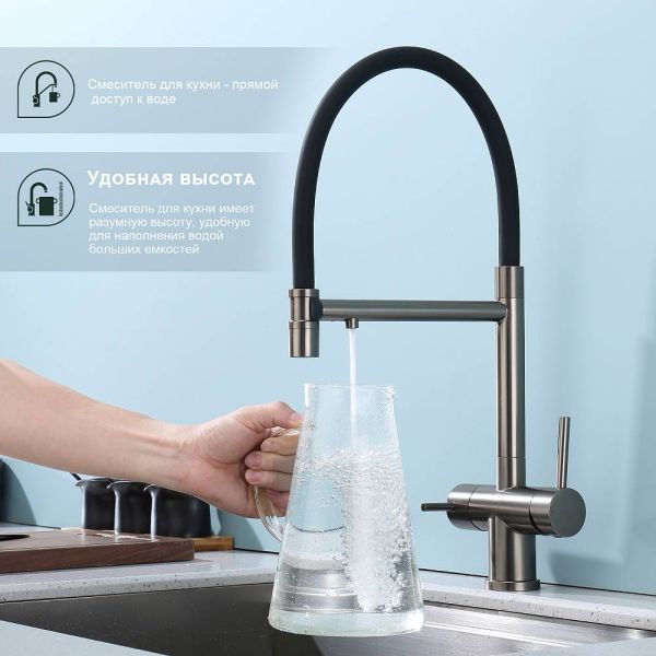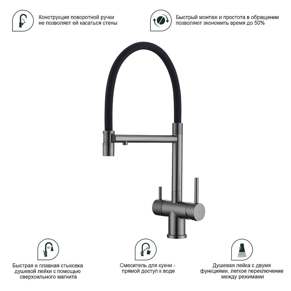 Смеситель для кухни Splenka S70.63.09 с подключением фильтра графит