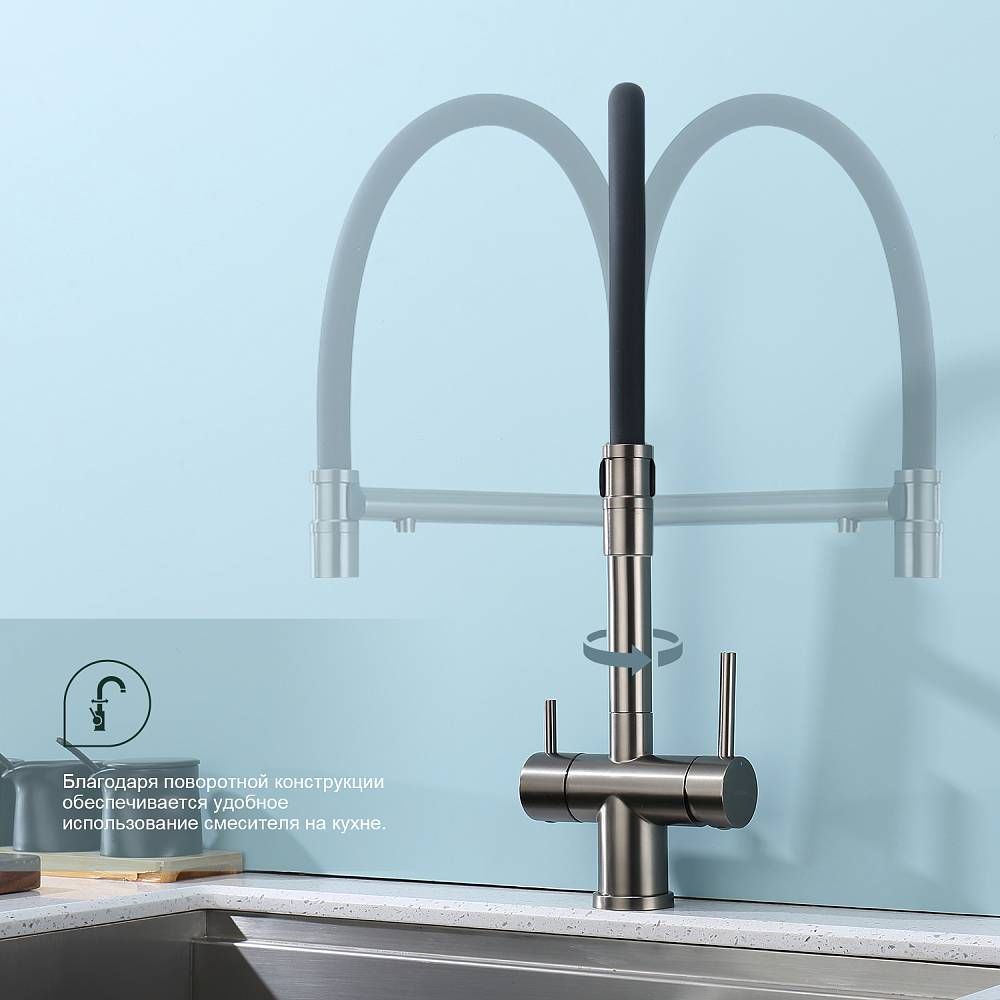 Смеситель для кухни Splenka S70.63.09 с подключением фильтра графит купить