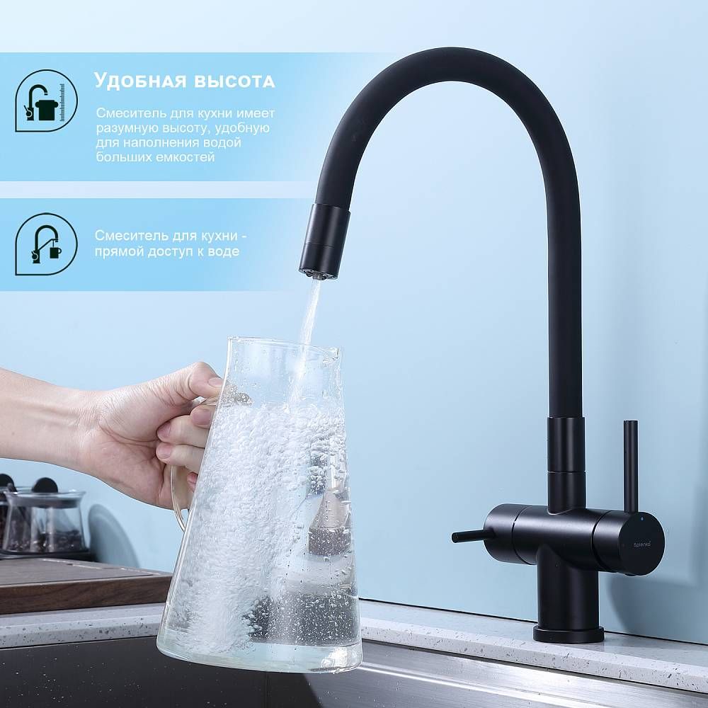 Смеситель для кухни Splenka S70.64.06 с подключением фильтра чёрный купить
