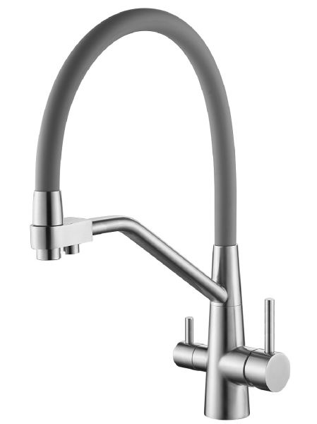 Смеситель для кухни с подключением к фильтру питьевой воды Splenka S71.62.05. Цвет: сатин. Гибкая подводка 50 см идет в комплекте. Благодаря грамотно разработанной конструкции, прибор отлично справляется с регулированием температуры и напора потоков воды. Однорычажные смесители максимально удобны при эксплуатации, всего одним движением руки можно закрыть или открыть воду, имеют стильный внешний вид, а также комфортность в использовании. Гарантия 5 лет