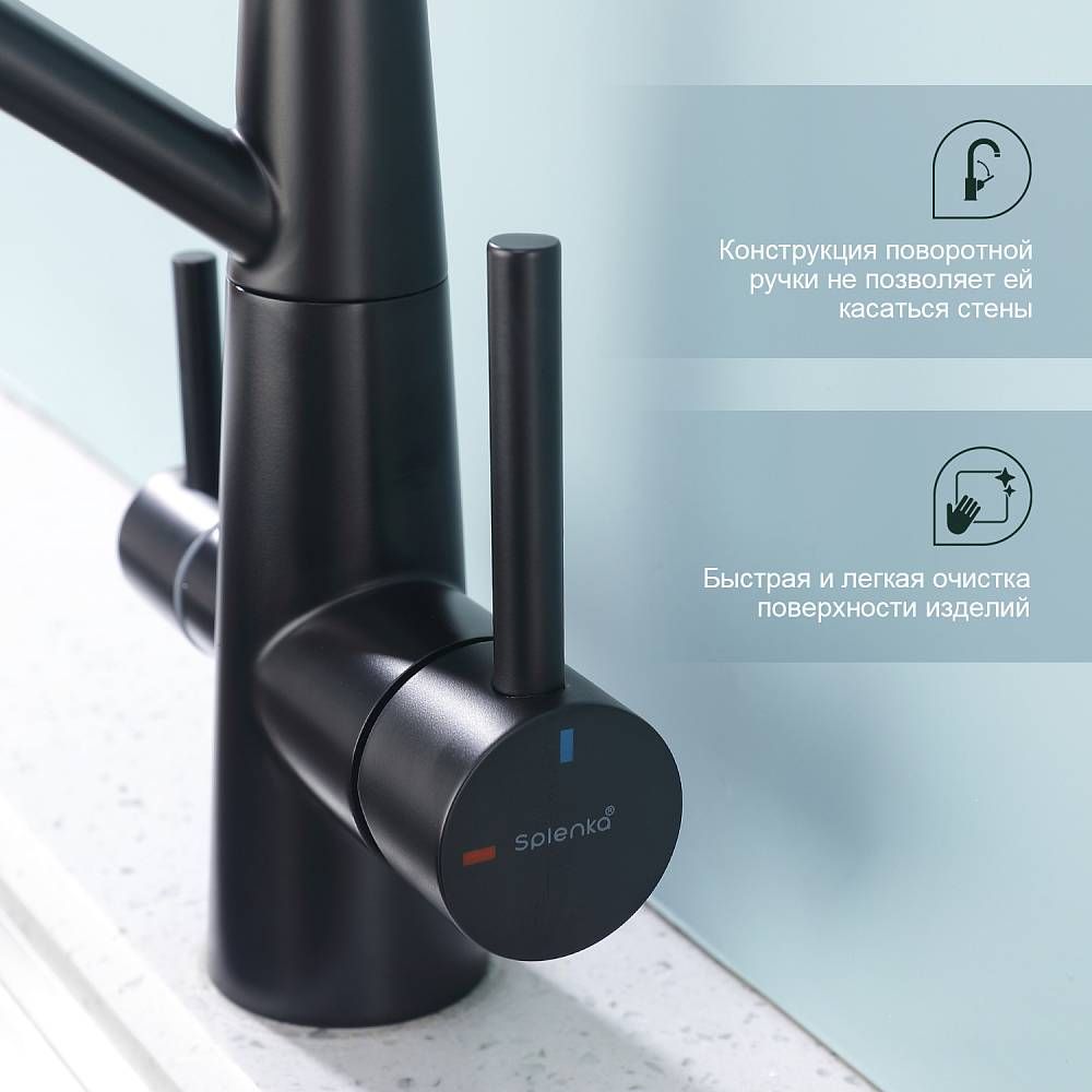 Смеситель для кухни Splenka S71.62.06 с подключением фильтра чёрный купить