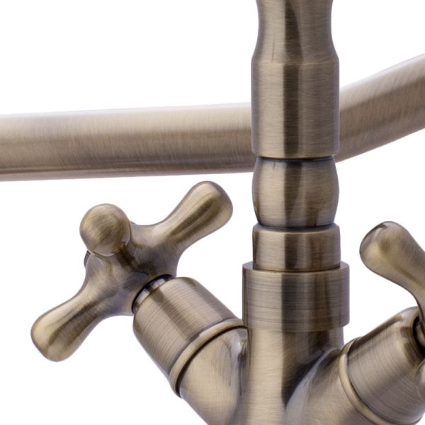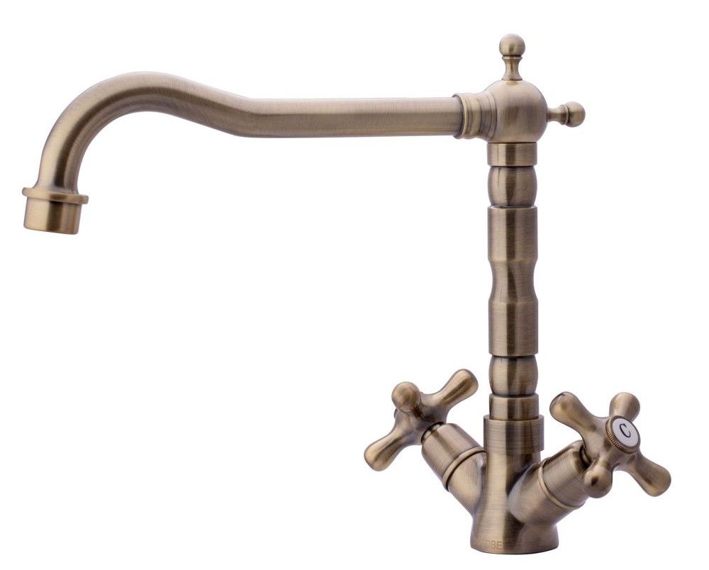 Смеситель для кухни двухрычажный в классическом стилеИзлив с поворотом 360 градусов.Керамический картридж Sedal.Аэратор Neoperl.Гибкая подводка SoftPEX.Гигиенически стабильная латунь с высоким содержанием меди.Цвет: бронза