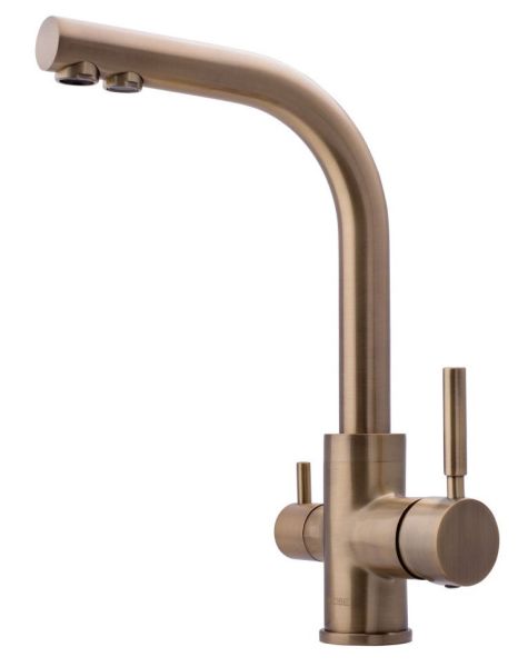 Смеситель для кухни с каналом для подключения фильтраИзлив с поворотом 360 градусов.Изолированный отдельный канал для фильтрованной воды.Керамический картридж Sedal.Аэратор Neoperl.Гибкая подводка SoftPEX.Гигиенически стабильная латунь с высоким содержанием меди.Цвет: бронза