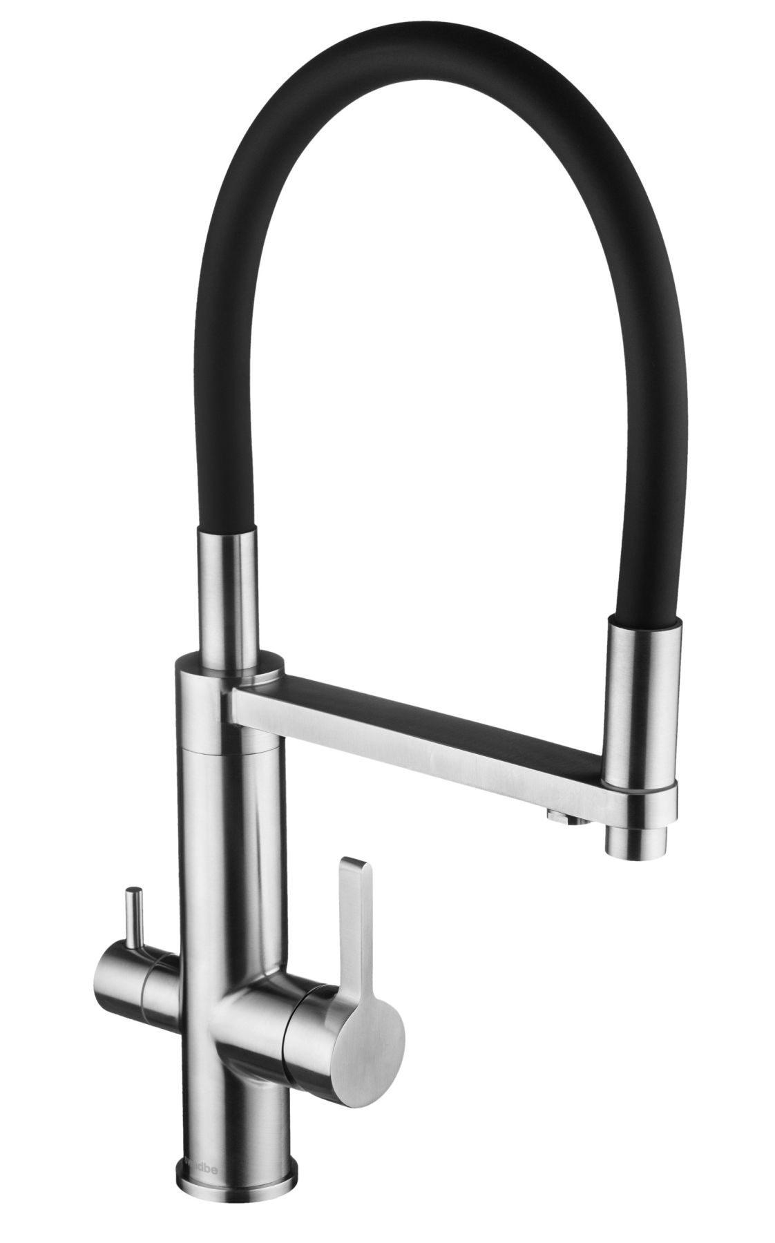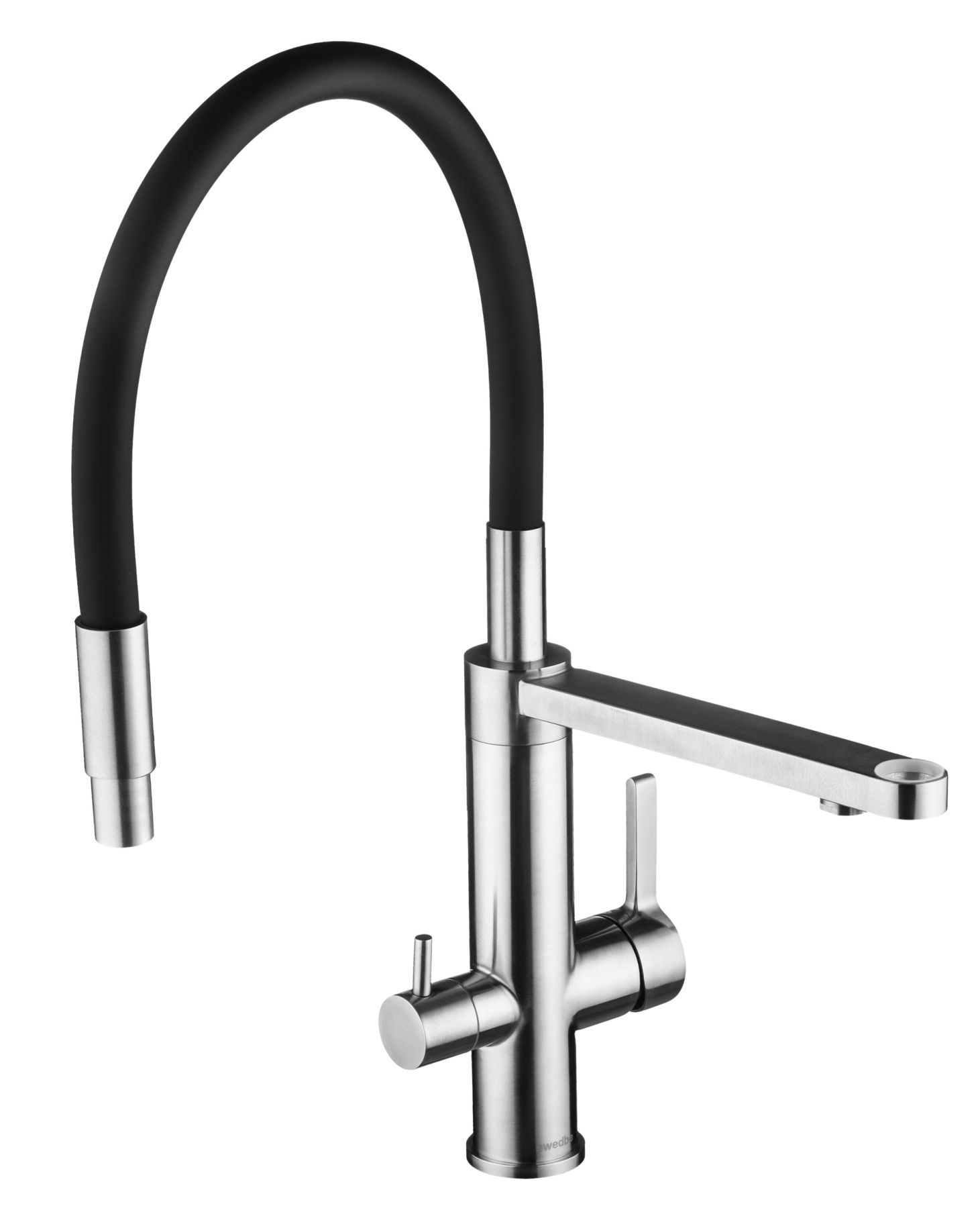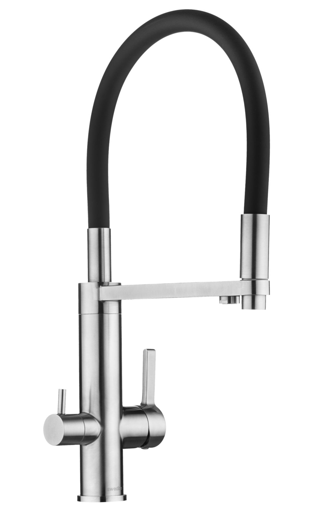 Смеситель для кухни Swedbe Selene Plus 8440 с каналом для подключения фильтра и гибким изливом нержавеющая сталь/чёрный