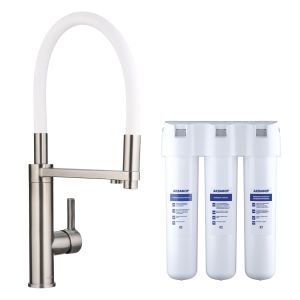 Смеситель для кухни Swedbe Selene Plus 8641K в комплекте с фильтром Аквафор Кристалл нержавеющая сталь/белый купить